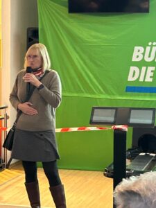 auch Mitglieder unserer Kreistagsfraktion waren vor Ort, Dörte Gedat, Vorsitzende der Kreistagsfraktion B90/Die Grünen nutzte als Nächste die Gelegenheit von dicken Brettern, und „echten Themen“ im Landkreis zu berichten.