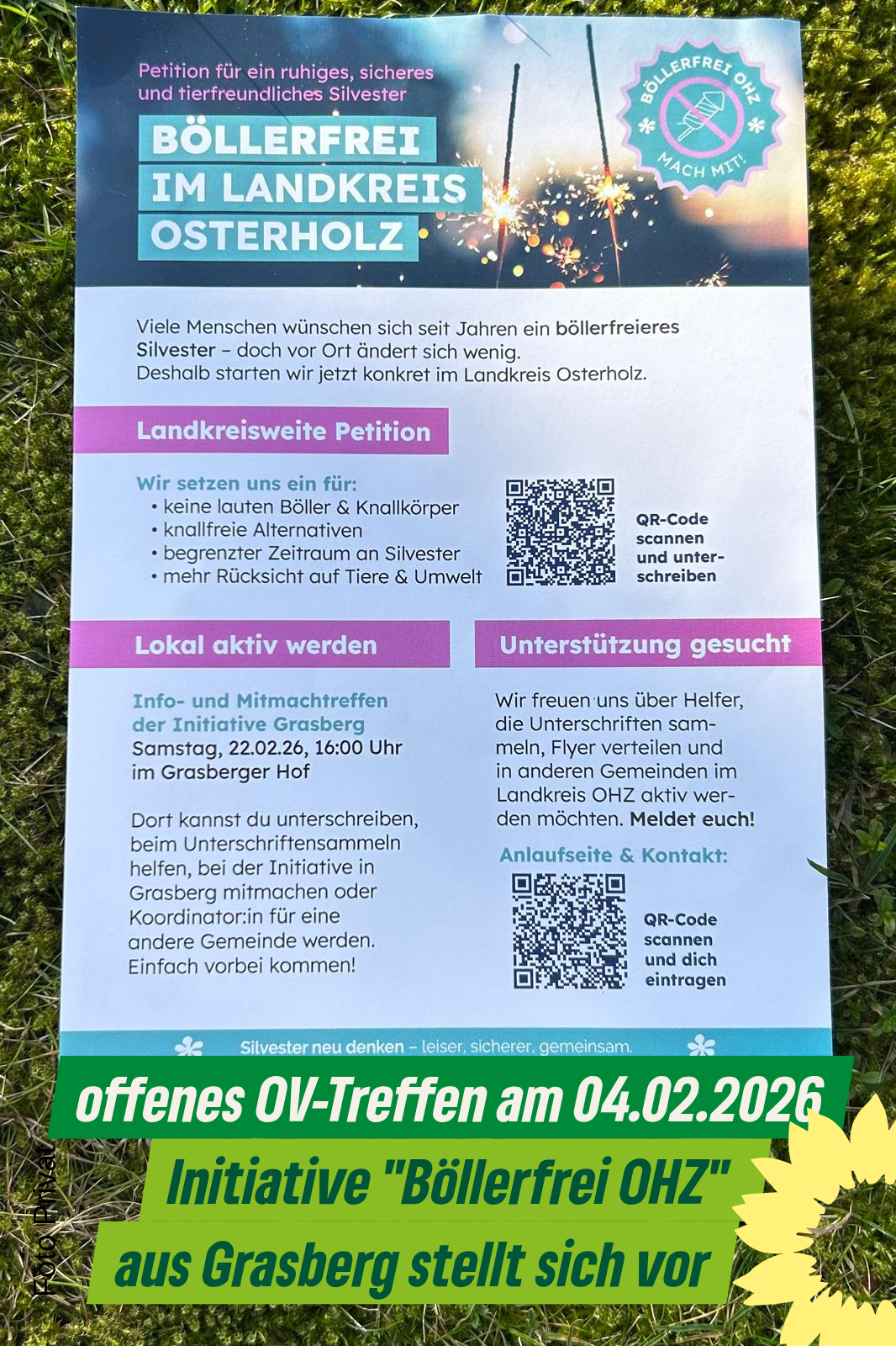 Die Grasbergerin wünscht sich ein Umdenken an Silvester und stellte am 04.02.2026 Ihre Initiative auf unserem offenen OV Treffen vor.