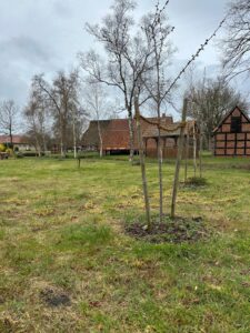 wo Bogislav Mieske mit Unterstützung von Franz Beckfeldt dafür gesorgt hat, dass die wilde Wiese gut vorbereitet in die neue Saison starten kann. Allen Obstbäumen geht es gut, es sind durch die Baumpflanzchallenge im letzten Sommer sogar zwei neue dazu gekommen (auch eine Birne des Seniorenbeirates).